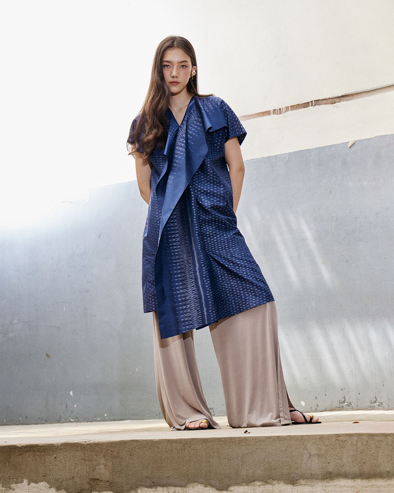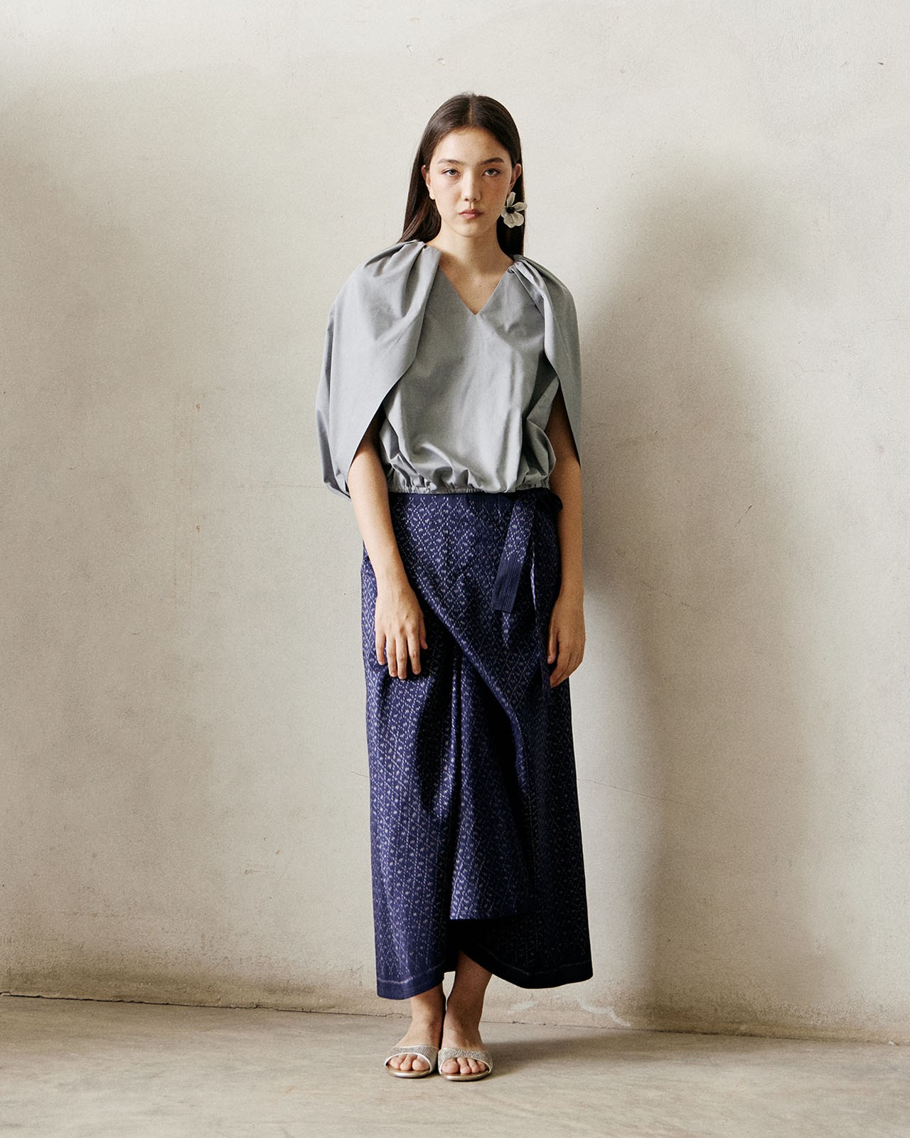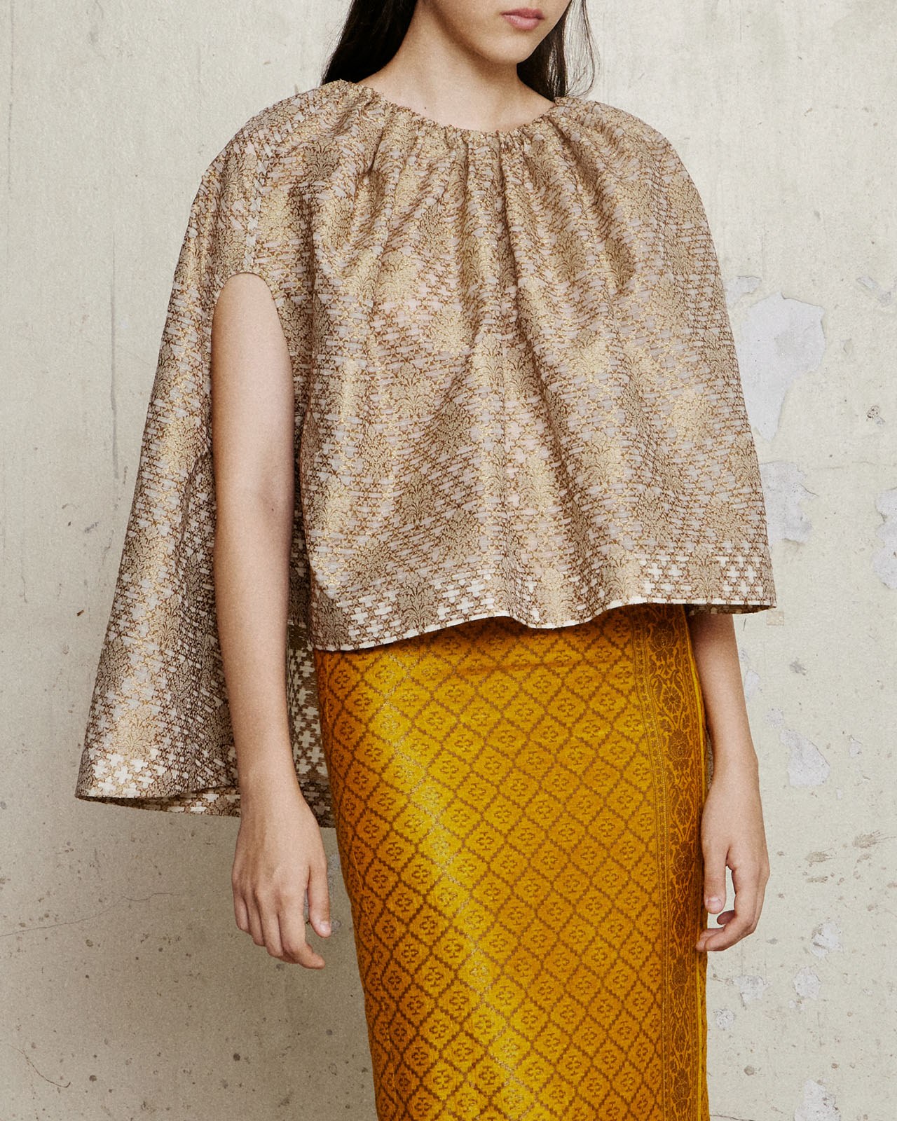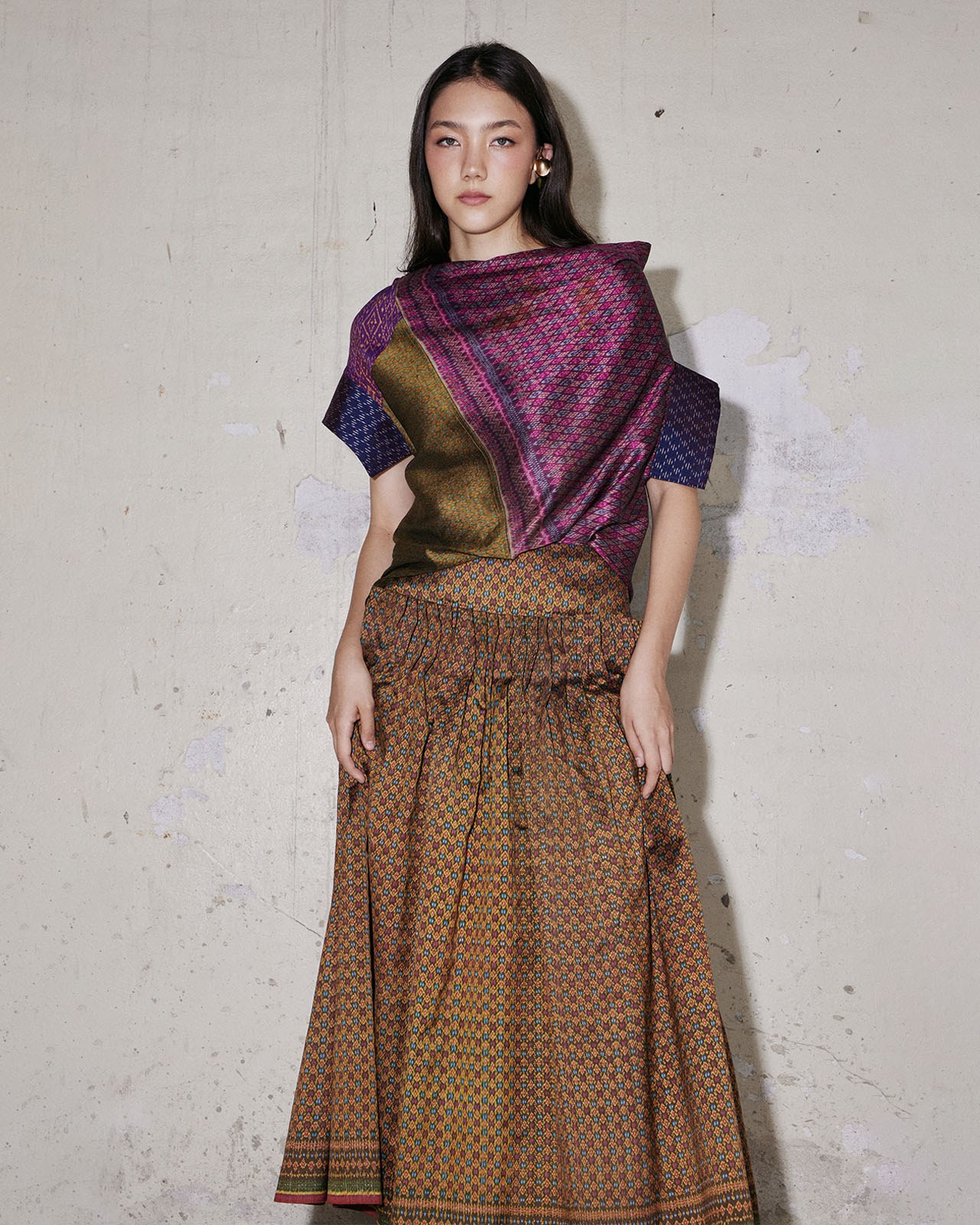 Inspired by working with materials. Designed based on the characteristics of the fabric and pattern to minimize fabric waste. But still maintaining the elegance and uniqueness of contemporary Thai fabrics very well.