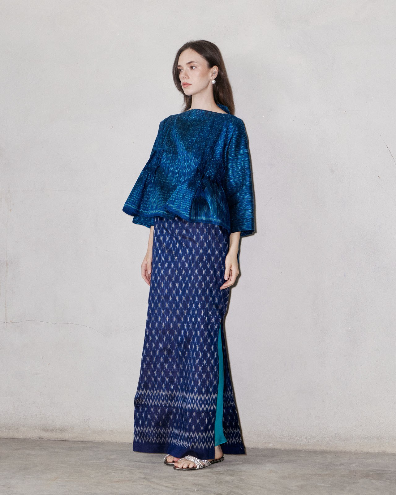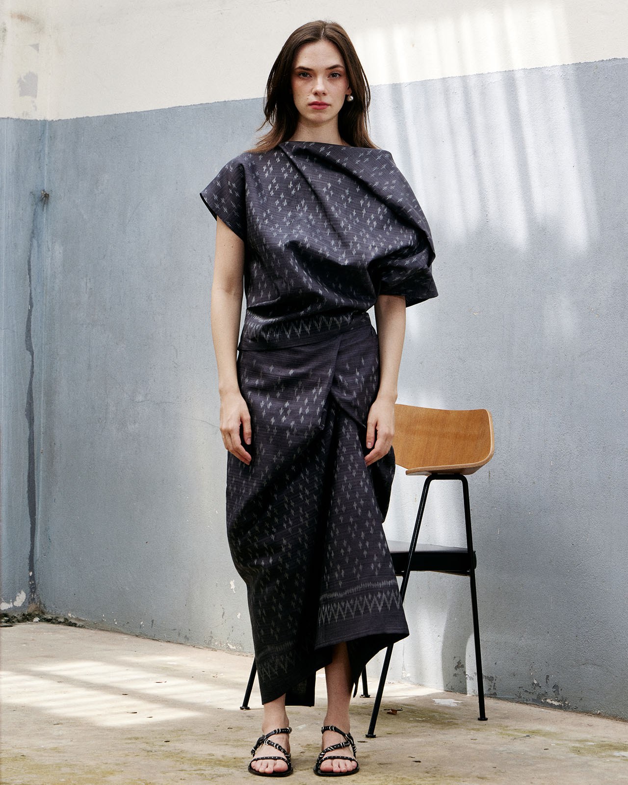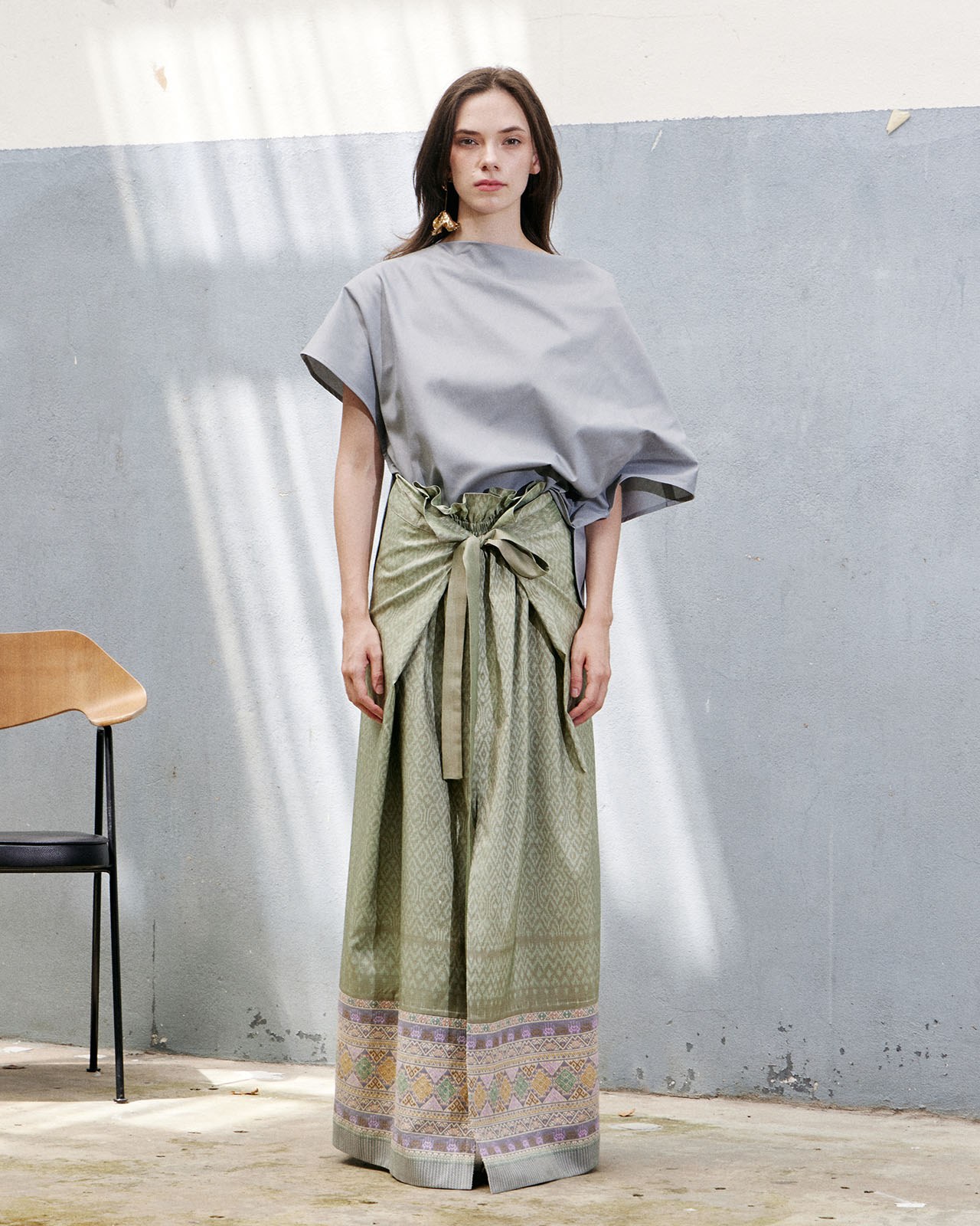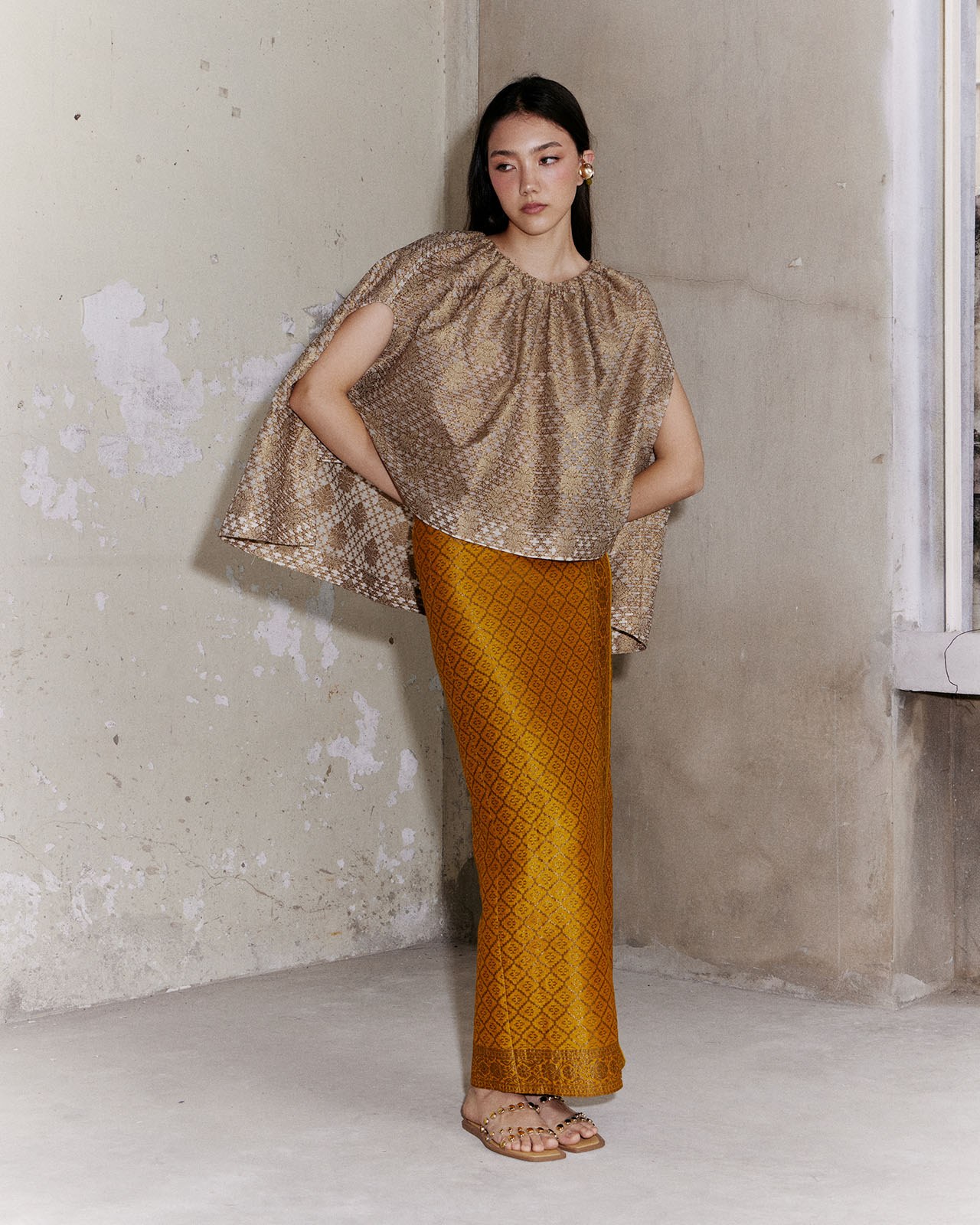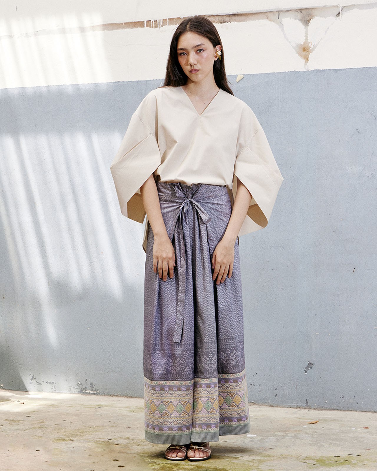 Inspired by working with materials. Designed based on the characteristics of the fabric and pattern to minimize fabric waste. But still maintaining the elegance and uniqueness of contemporary Thai fabrics very well.