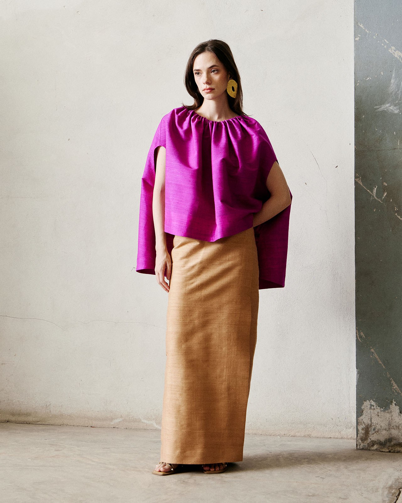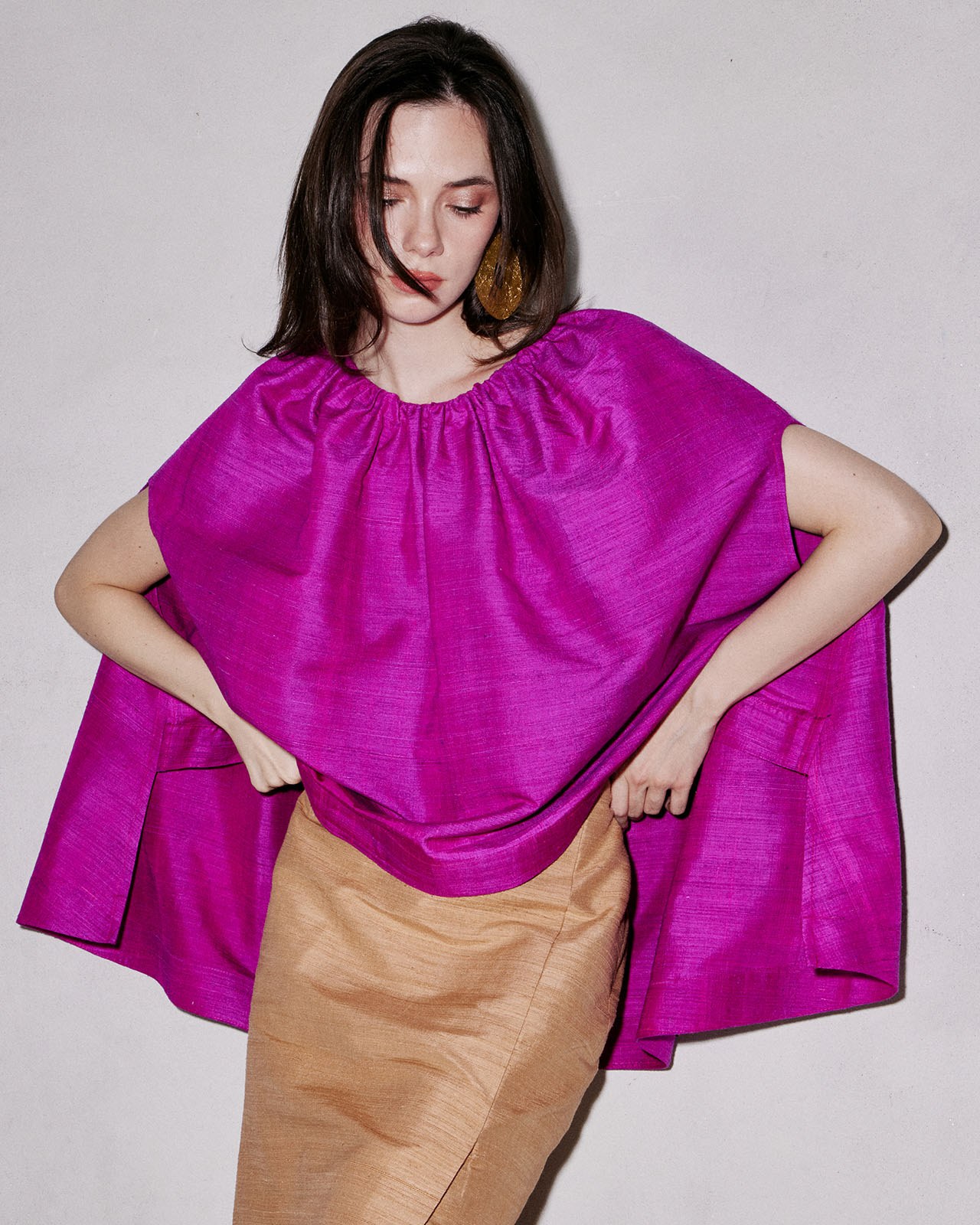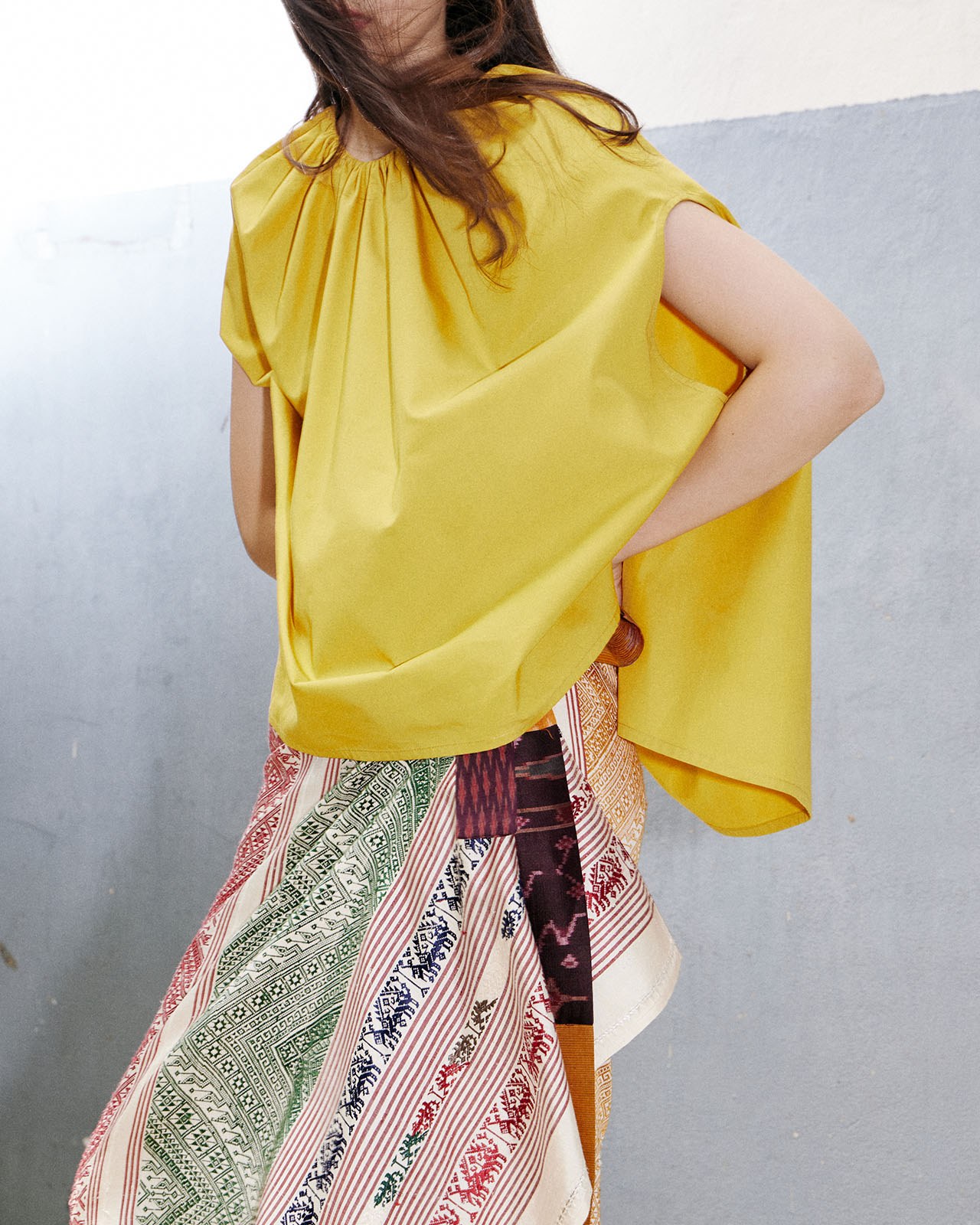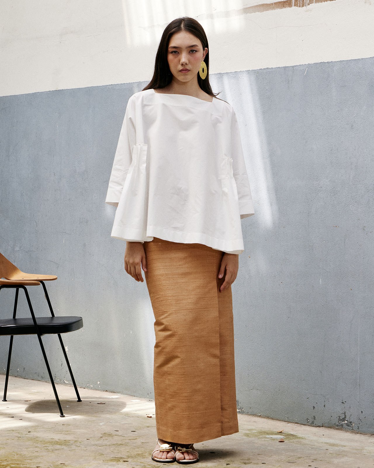 Inspired by working with materials. Designed based on the characteristics of the fabric and pattern to minimize fabric waste. But still maintaining the elegance and uniqueness of contemporary Thai fabrics very well.